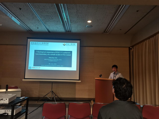会议期间,夏文真教授作了题为《面心立方金属Σ3{111}共格孪晶界的微观摩擦学响应》的学术报告,展示了我校在材料微观力学行为领域的最新研究成果,受到国际同行的广泛关注与积极评价。报告聚焦晶界结构对材料微摩擦性能的影响,内容详实,观点新颖,体现了在材料强度微观机制研究方面的创新能力。